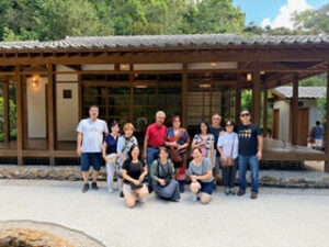 この茶室が、2016年8月28日に犯罪者による放火で全焼し、市がイビラプエラ公園の日本館修復、ジャパンハウスの東濃ヒノキを使った外壁を施工した岐阜県中津川市加子母の中島工務店(中島紀于社長)に依頼し、日本から3人の宮大工棟梁が来伯されブラジル岐阜県人会会員の丹羽エリザベッチ会員が監督として再建され本年6月18日いみじくも「ブラジル日本移民の日」にオープニングされました。